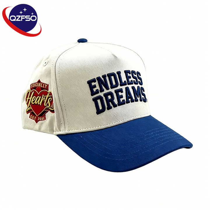 QZFSO Custom 5-panel Two-tone Cotton Baseball Cap Popular Women's Curved Brim Casual Machine Embroidered Stylish Sports Hat