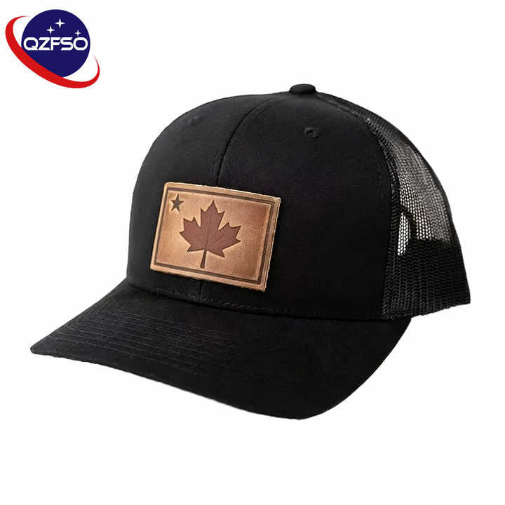 Casquette de sport trucker QZFSO personnalisée à 6 panneaux avec broderie de patch – Casquette de baseball en maille et cuir avec logo et étiquette tissée en coton – Grande vente