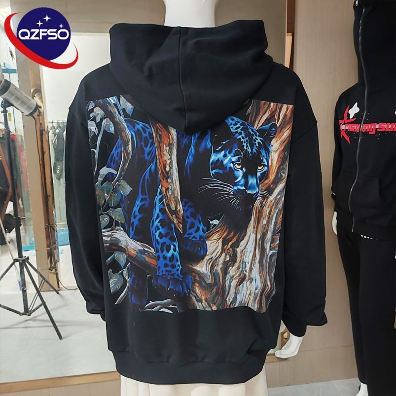 QZFSO personnalisé français éponge Vintage lavage à l'acide hommes fermeture éclair broderie sweatshirt fabricants 400 500gsm Logo 100% sweats à capuche en coton