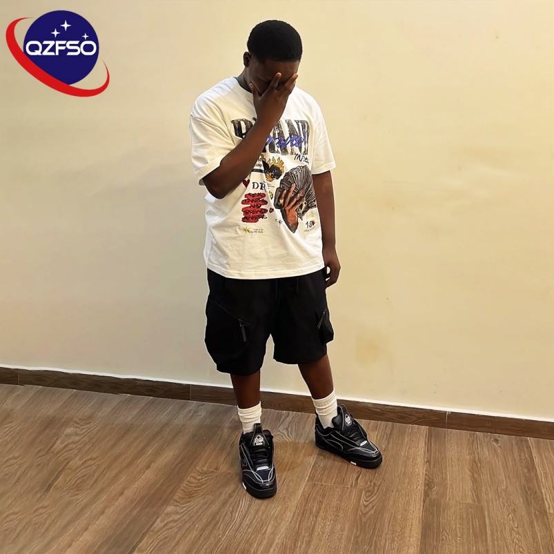 QZFSO haute qualité sérigraphié poids lourd français éponge graphique t-shirt Streetwear lavé à l'acide recadrée Boxy t-shirts pour hommes