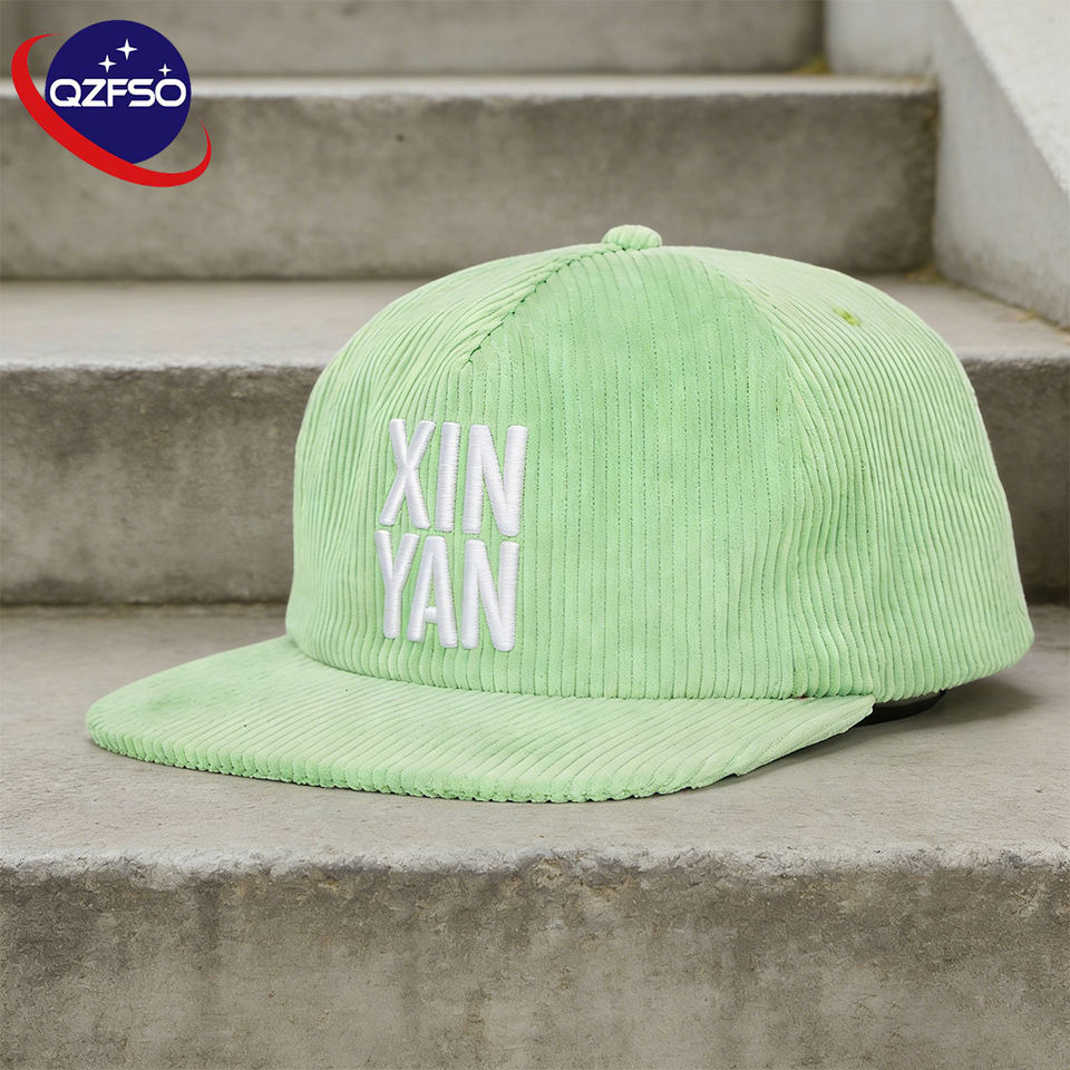 Casquette de baseball QZFSO en velours côtelé à visière plate, personnalisable avec logo brodé, 5 panneaux, haute qualité, réglable, style golf, snapback