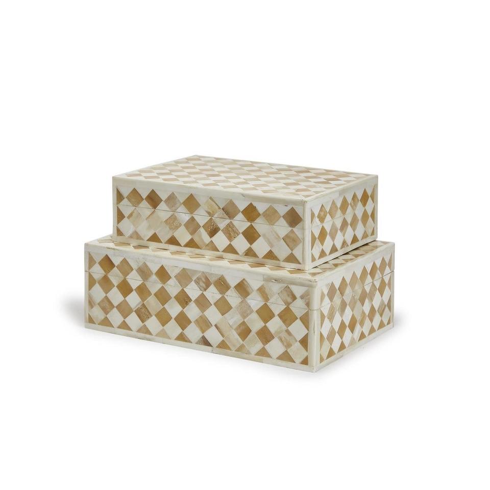 Qalara MDF Natural Bone Inlay Chevron Design Art Decor Decorative Antique Bone Inlay Jewelry Storage Box