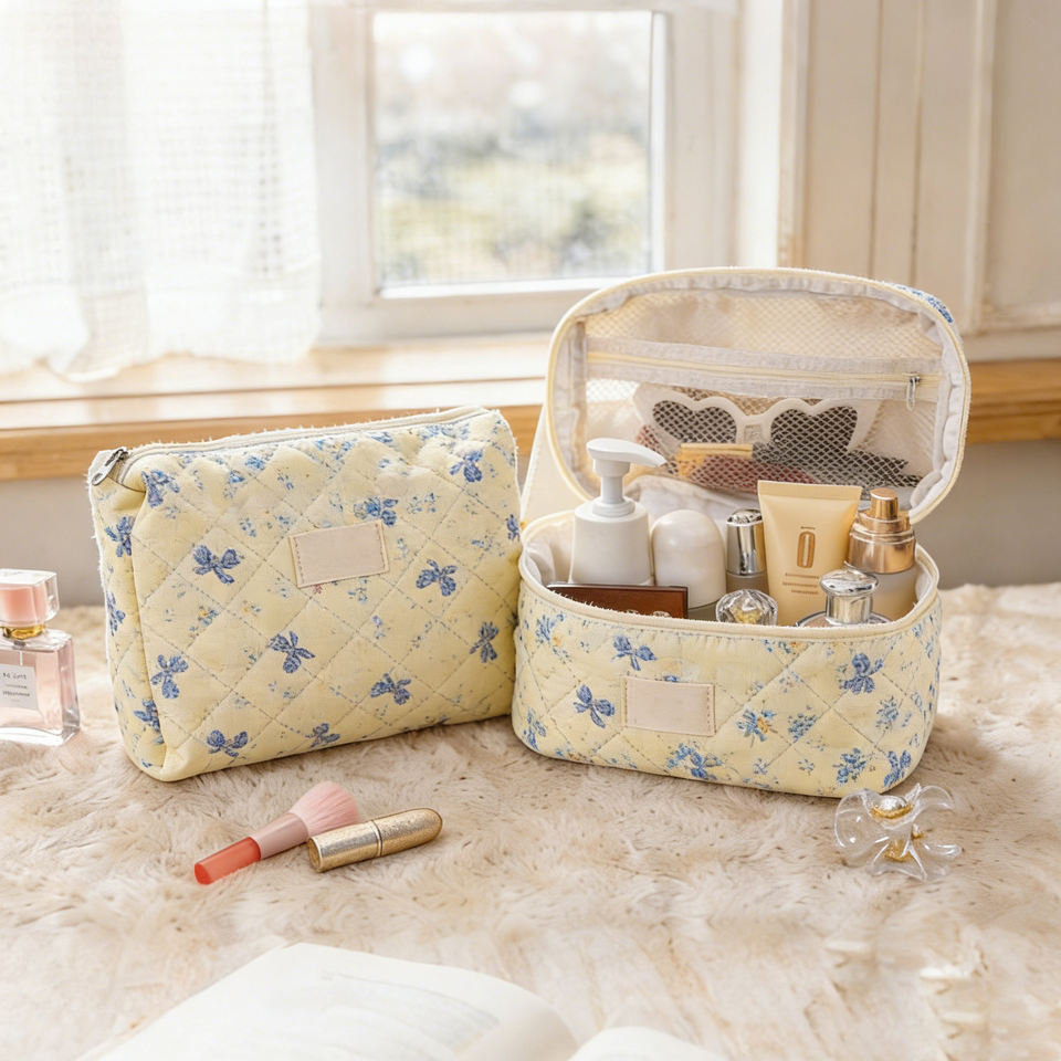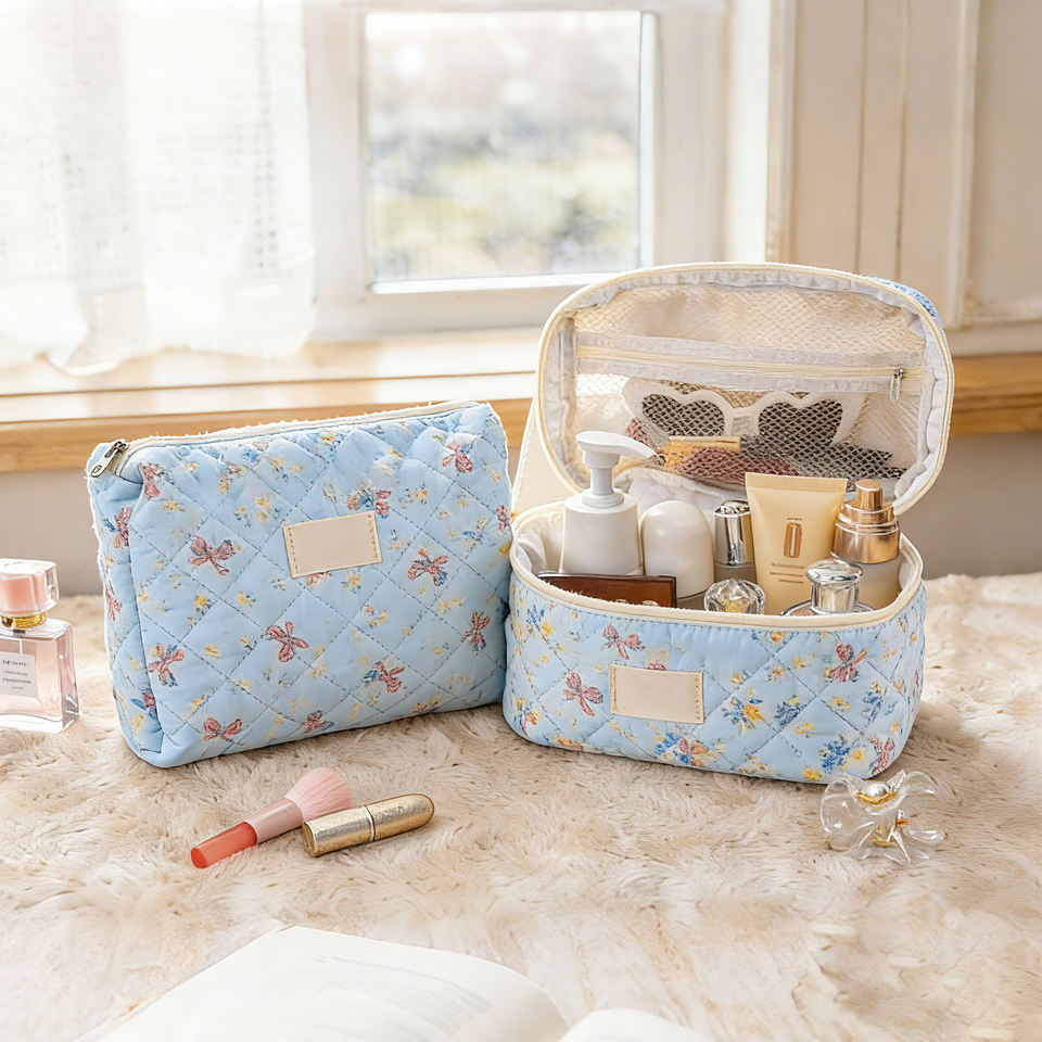 Pochette à maquillage florale matelassée Qetesh, logo personnalisé, grandes et petites tailles, trousse de toilette