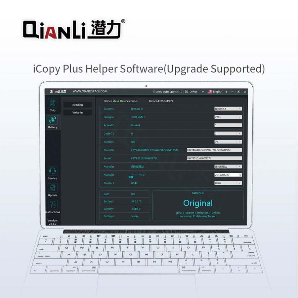 QianLi ICopy Plus pour vibrateur/fonction tactile/lecture et écriture du capteur de lumière; Récupération de la tonalité réelle; Modification des données de la batterie