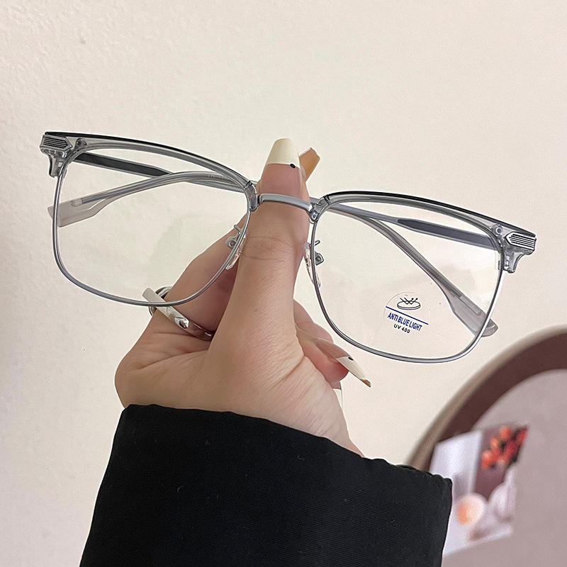 Lunettes anti-lumière bleue Qianai pour hommes, monture demi-cerclée, verres AC, pont moyen, monture quadrilatère, origine Taizhou