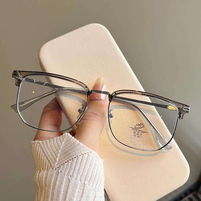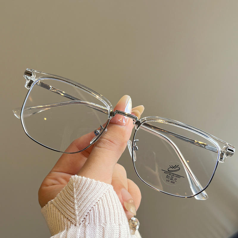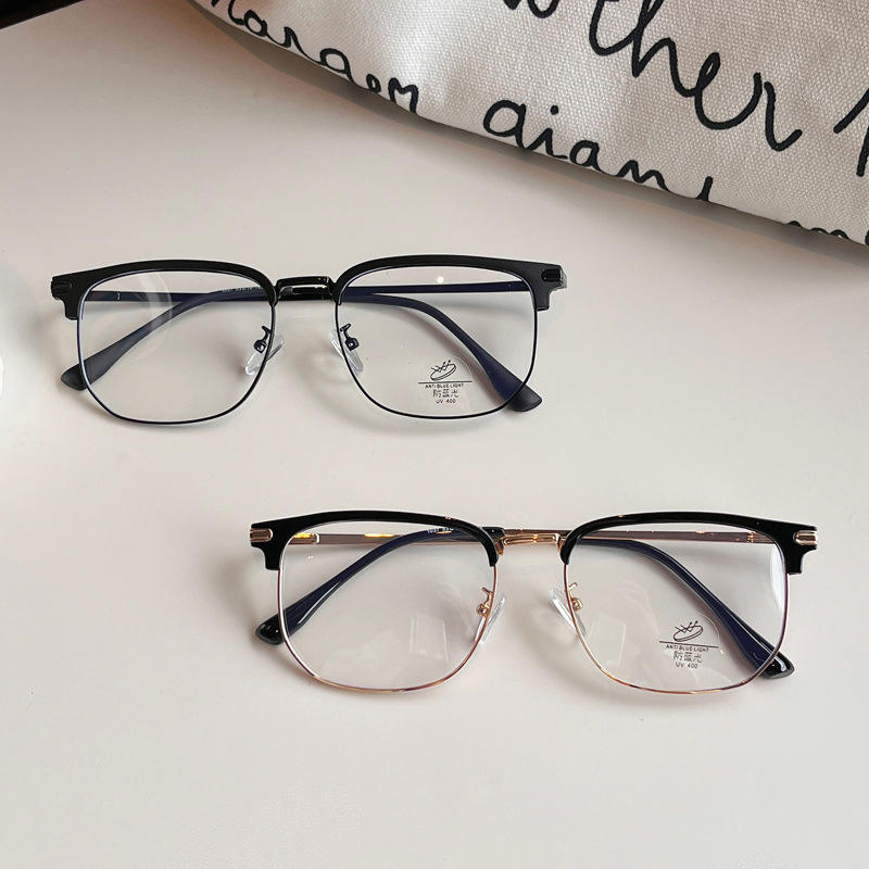 Monture de lunettes métalliques demi-cerclées Qianai, carrées, anti-lumière bleue, unisexe, taille moyenne, verres optiques en acétate