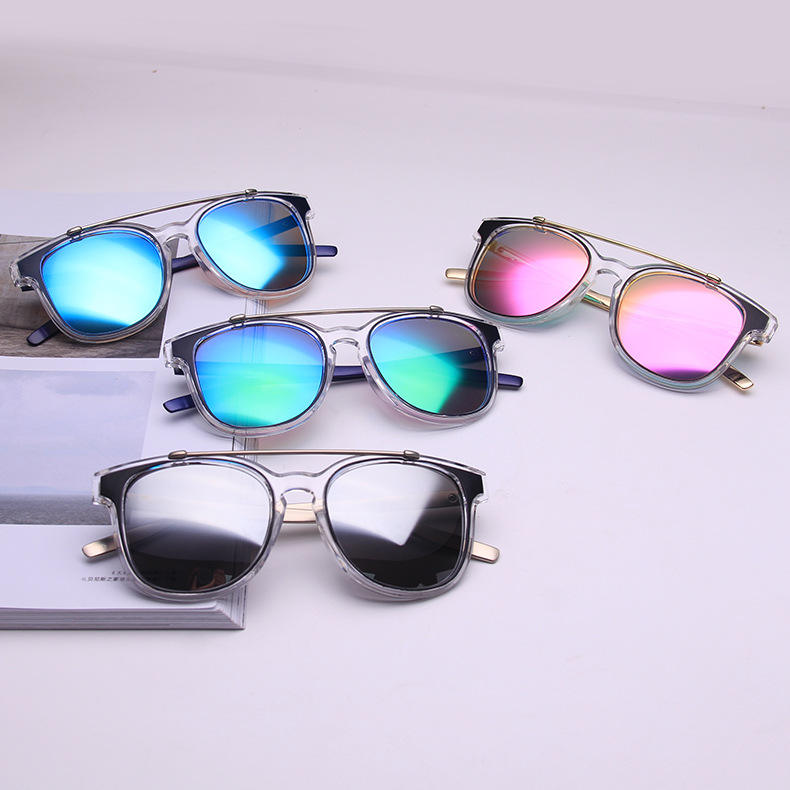 Lunettes de soleil Qianai à monture transparente, verres bleus réfléchissants, protection UV pour femmes, forme ovale tendance rétro