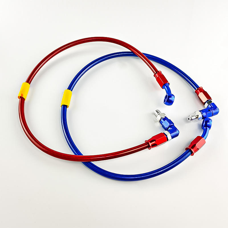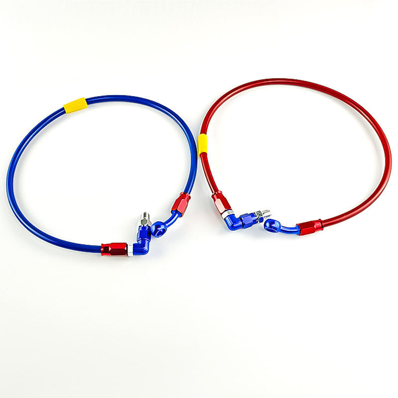Tuyau de frein de moto Qiangye, rouge et bleu, en acier inoxydable tressé, raccord à 90 degrés pour modification de moto