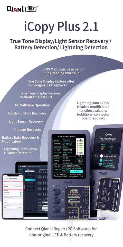 Qianli ICopy Plus 2.1 avec carte de test de batterie pour 7 8 8P X XR XS XSMAX 11PM 12 LCD Vibrateur Transfert Programmeur EEPROM