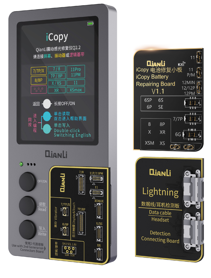 Qianli ICopy Plus Programmer 2.2 + Version Set avec 4 cartes pour True Tone, batterie, Face ID, écouteurs, Data Ceble