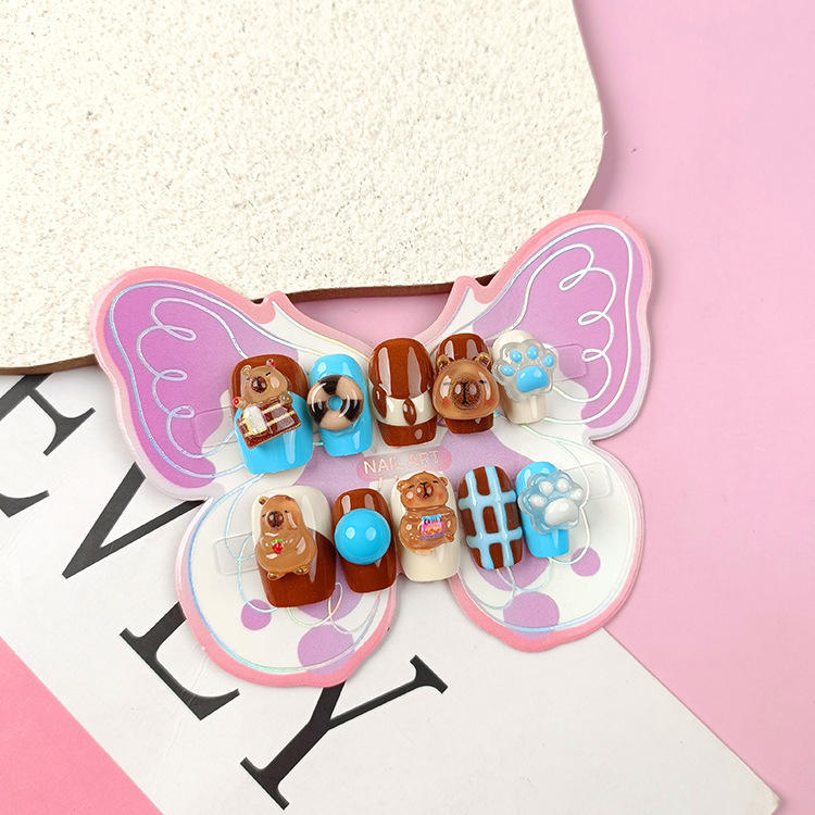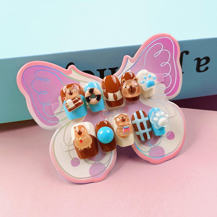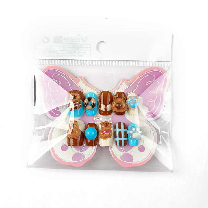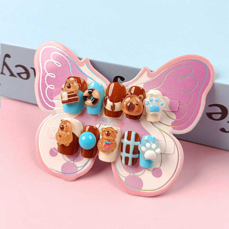 Qianya Cat Paw Plaid Teens Press on Nails 10 PCS - Cute Checkered False Nails for Teen Girls 12-18 Years, Big Kids Nail Art