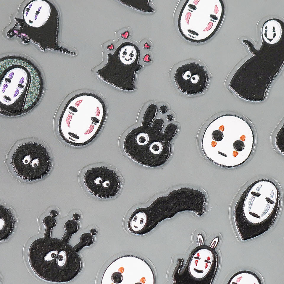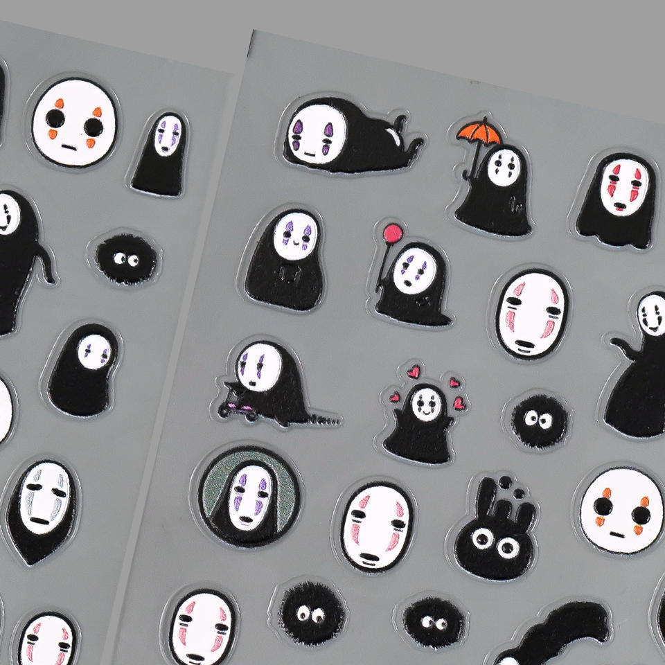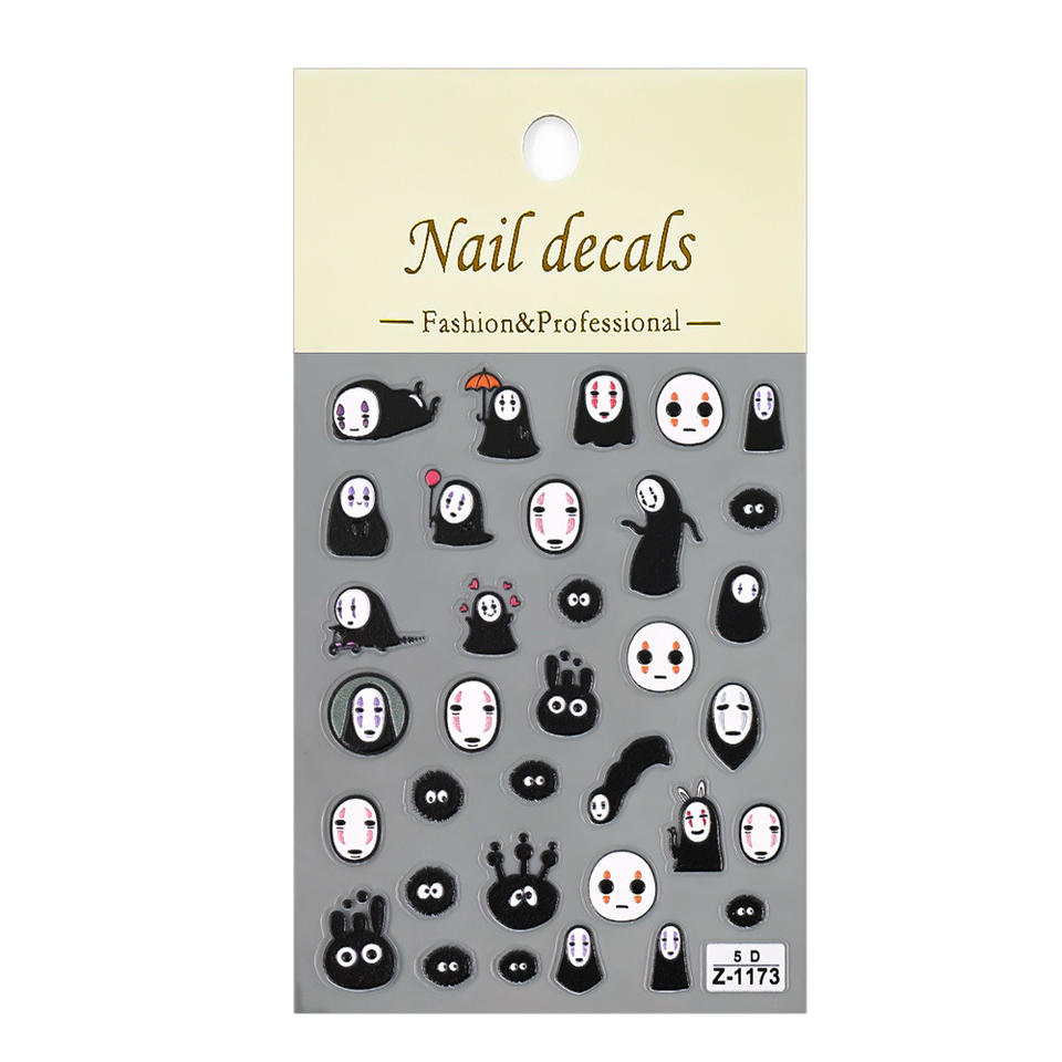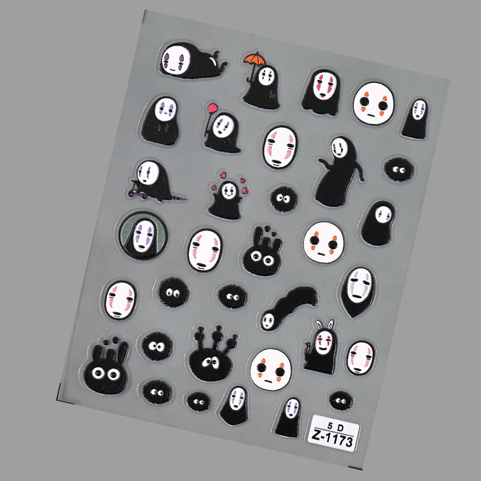 Qianya nouveaux autocollants pour ongles de dessin animé sans visage en relief 5D-3D mobile auto-adhésif Anime Nail Art, breloques inspirées du Studio Ghibli