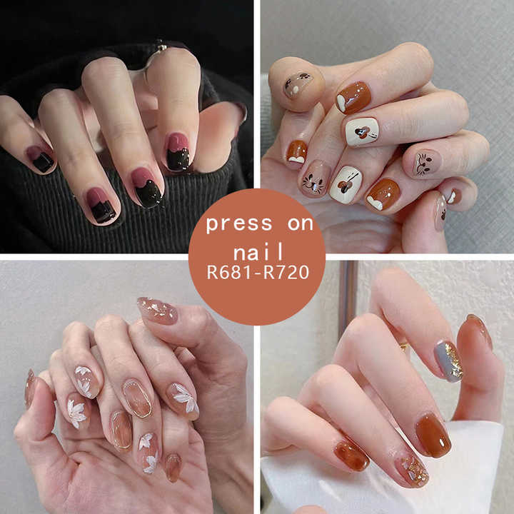Qianya Simple Style mignon presse sur les ongles 24 pièces-automne hiver Caramel ambre faux ongles ensemble abordable luxe Nail Art Kit