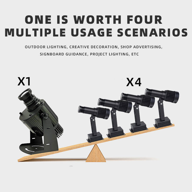 Projecteur publicitaire extérieur étanche IP67 à LED RGB avec interrupteur statique à quatre chiffres QiaoXun, panneau lumineux au sol, logo personnalisé Gobo