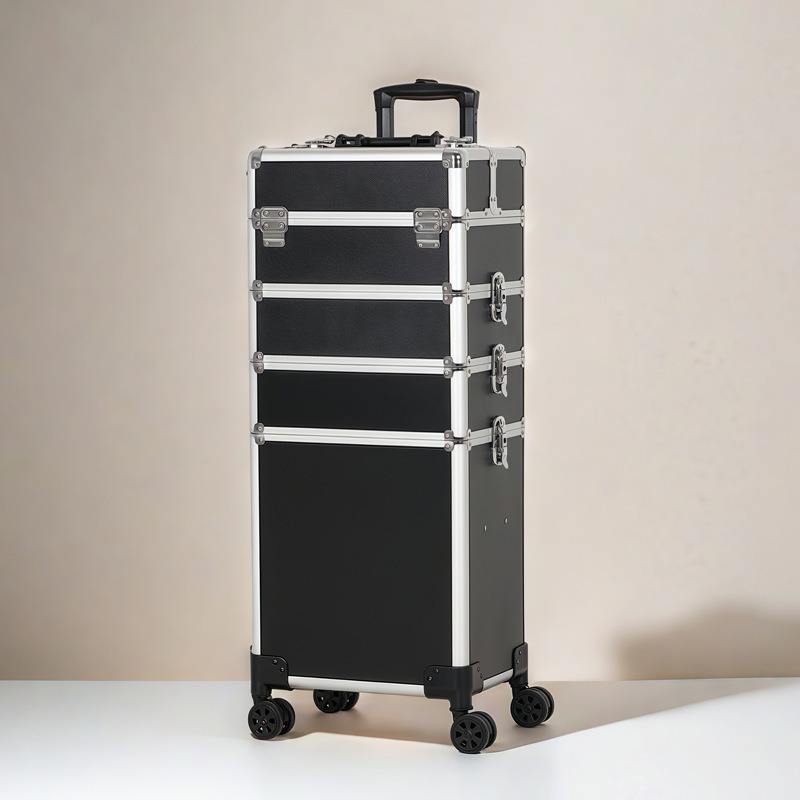 Chariot de Salon Qihui avec Roues Universelles, Grande Capacité, Noir, Valise de Rangement Professionnelle pour Maquillage et Beauté, Amovible