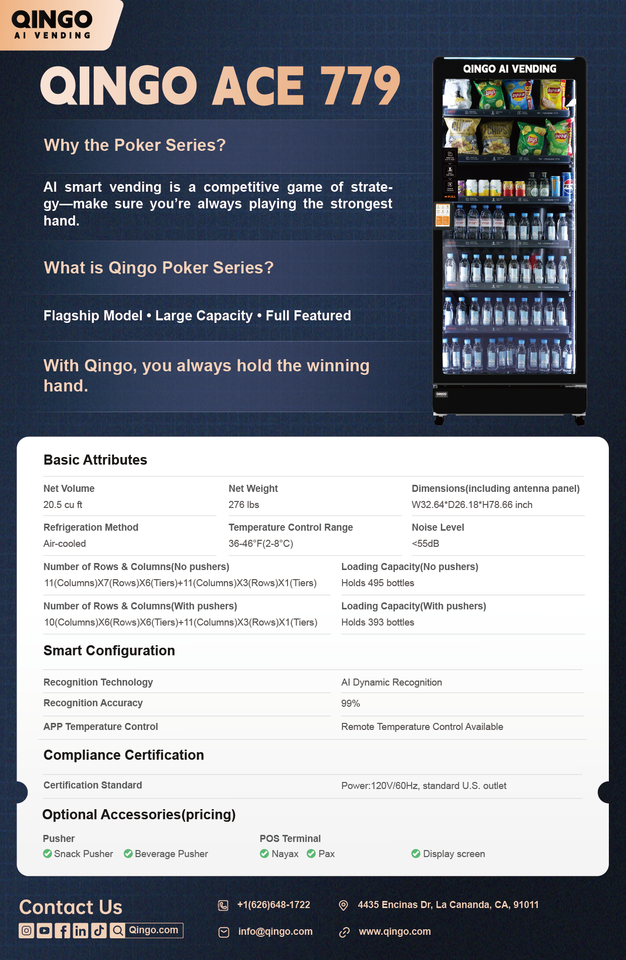Distributeur automatique intelligent Qingo à écran tactile pour hôtels et écoles, distributeur de boissons et de nourriture combinées