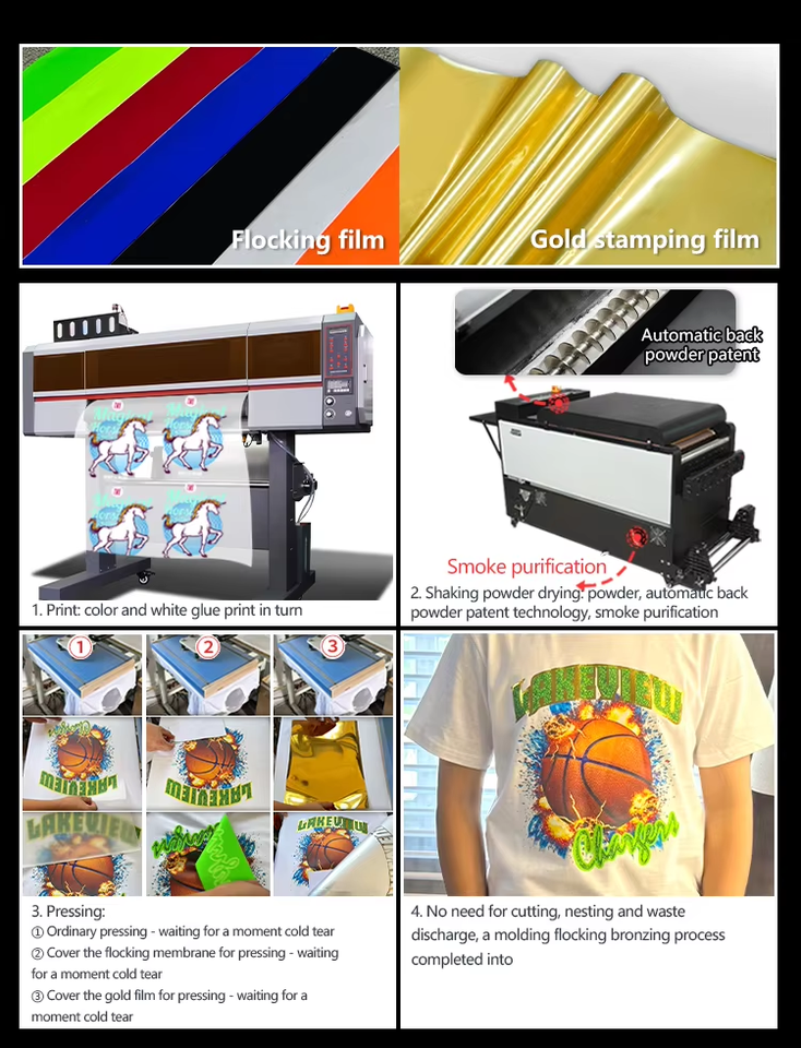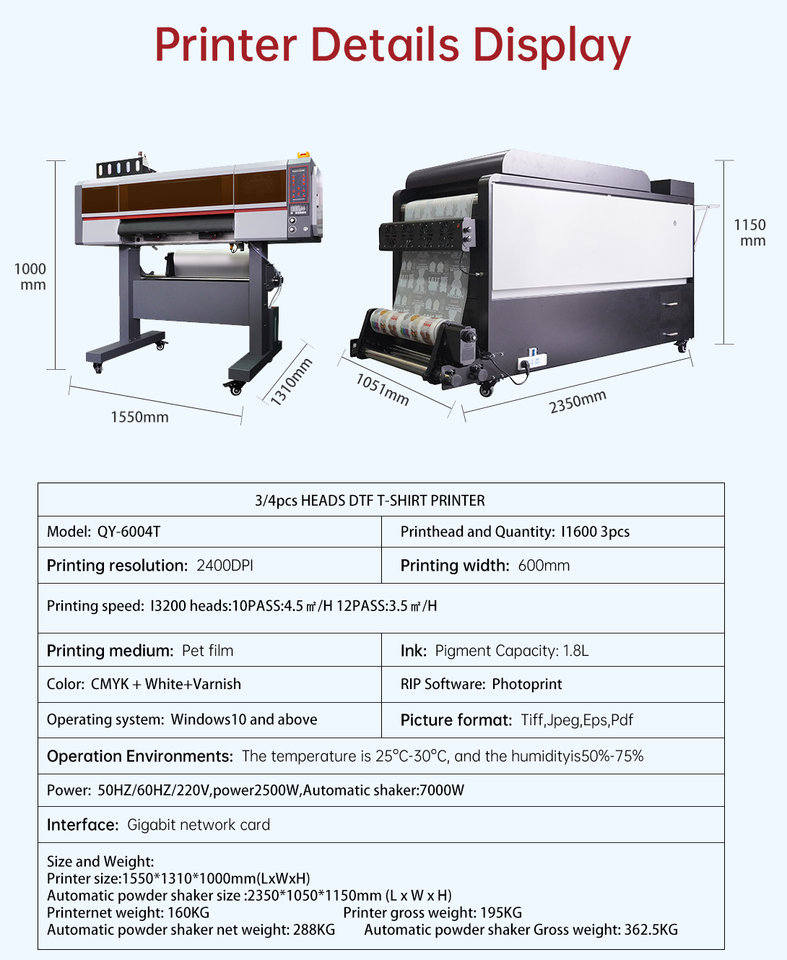 Qinyu 60cm T-Shirt Machine D'impression Estampage Flocage DTF Imprimantes Avec Trois I1600 Têtes Rouleau à Rouleau DTF Imprimante UV pour Chemises
