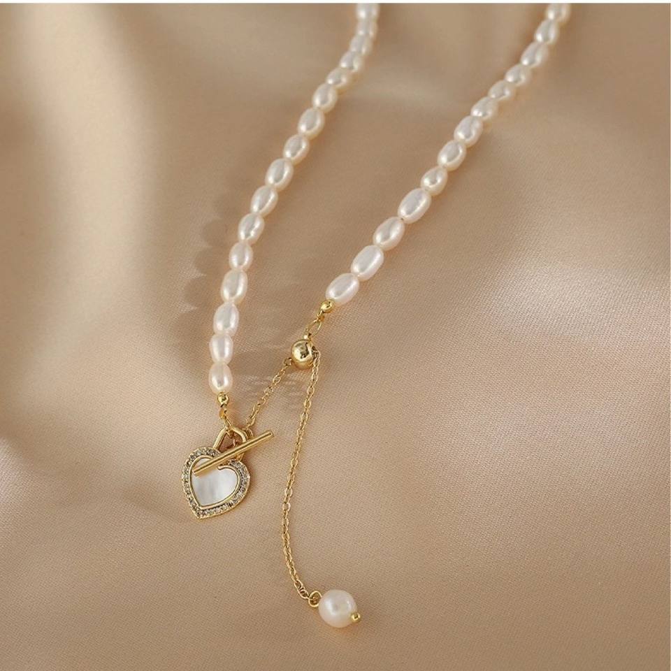 Collier en perles naturelles pour elle, cadeau de la fête des amoureux, collier de fée au tempérament, chaîne de collier féminin, pendentif d'amour d'été