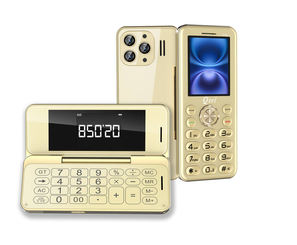 Téléphone portable pliable Qtel Fold6 Triple SIM avec écran de 2,4 pouces, fonction calculatrice et batterie BL-25BI