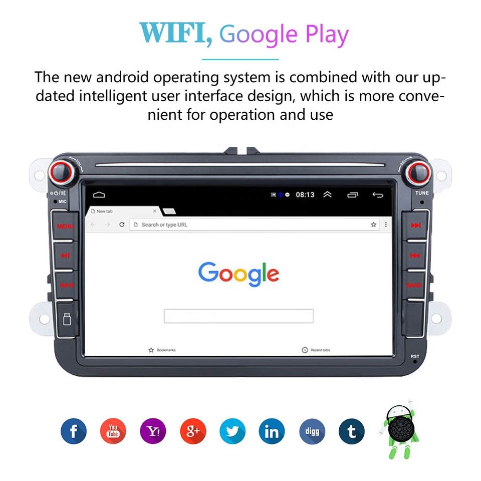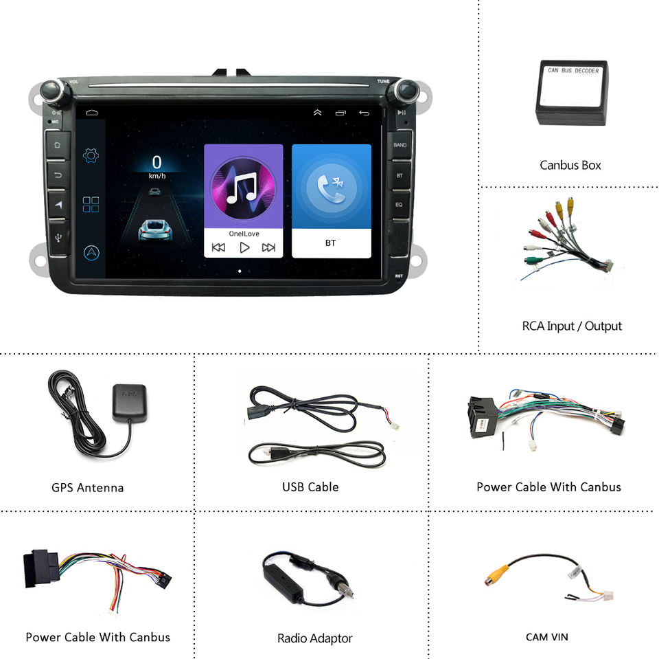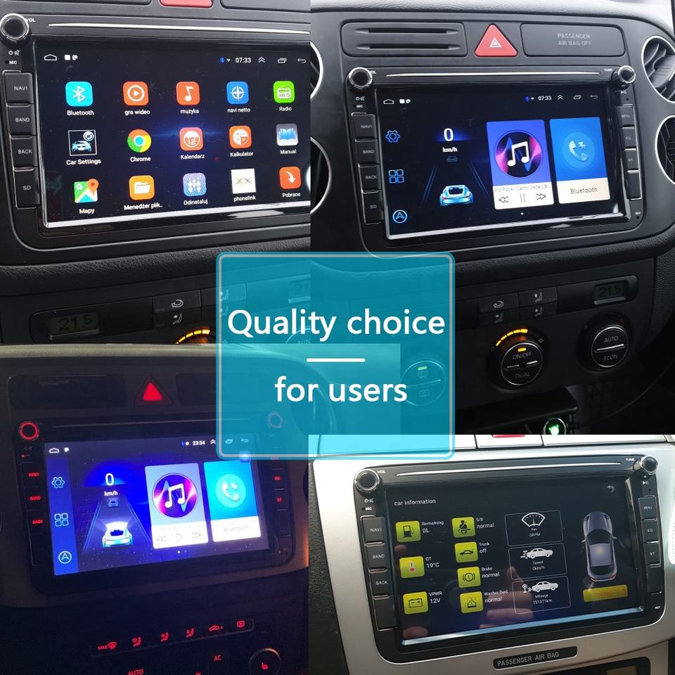 Autoradio multimédia 2 Din Quad Core 1.3GHZ avec GPS, navigation, WIFI, BT, Mirror Link, écran 8 pouces, lecteur Android pour VW