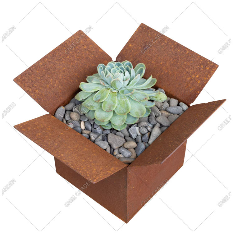 Quadrilatère Bord Roulé Boîte En Forme De Plancher Debout Petite Maison En Acier Corten Pot De Fleur Forme Spéciale Usine En Gros