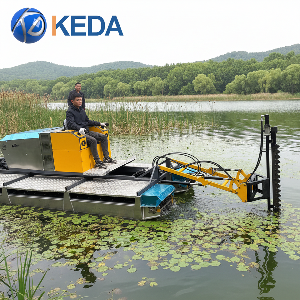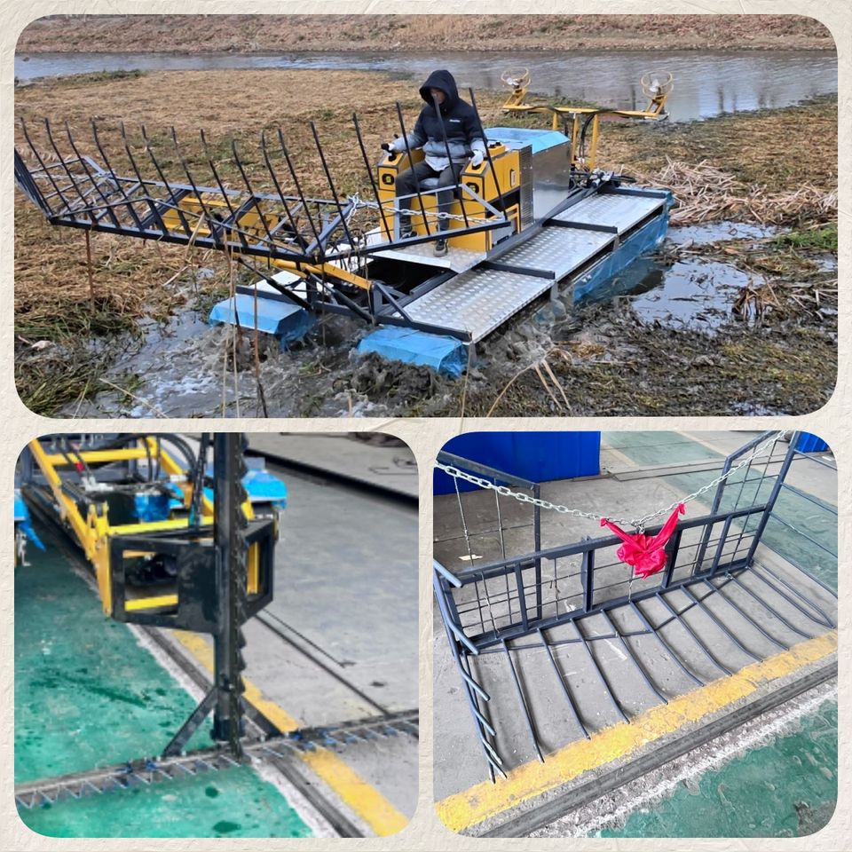 Bateau de travail amphibie diesel sur chenilles de qualité supérieure avec construction en alliage d'aluminium pour la récolte des plantes aquatiques et des roseaux
