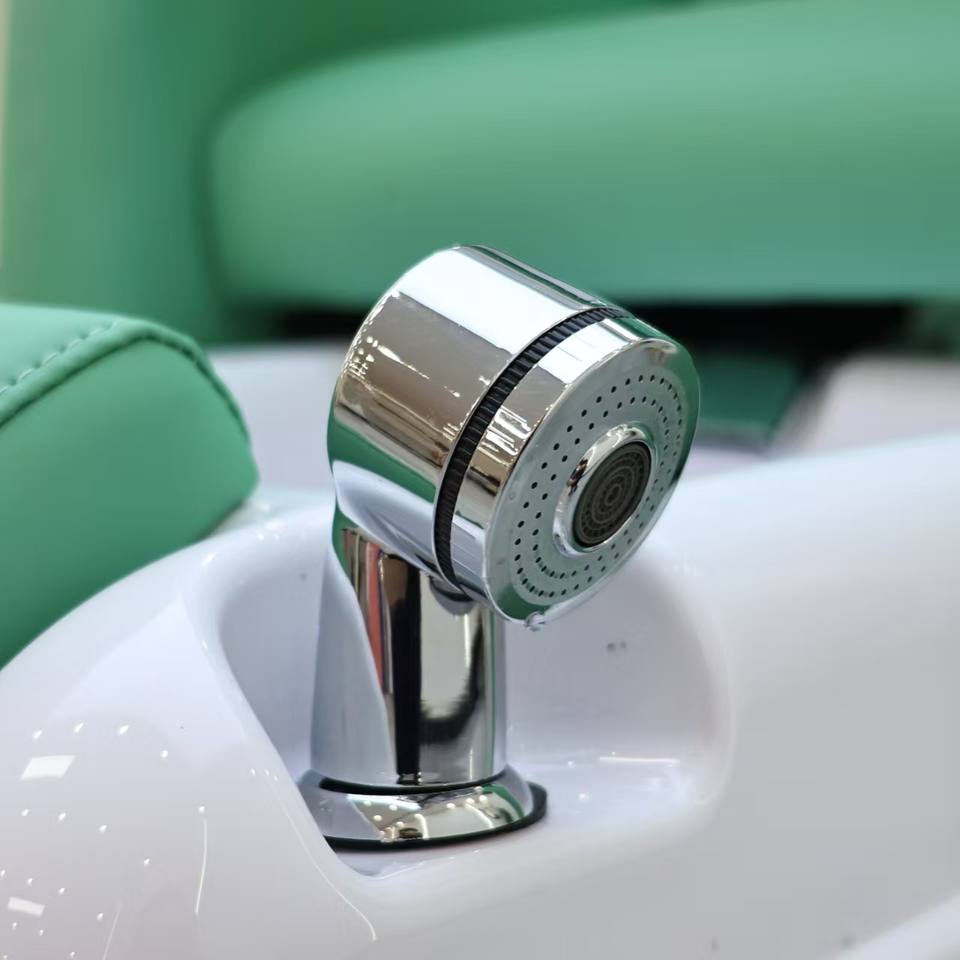 Fauteuil de pédicure de luxe moderne en cuir vert pour salon de manucure, avec massage et pompe à jets pour soins des pieds
