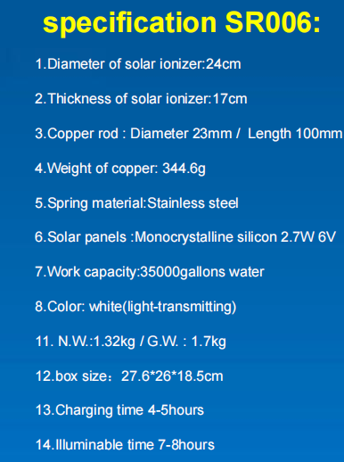 Ioniseur solaire pour piscine hors sol en acier inoxydable SR006, portable, longue durée, léger, garantie de 2 ans