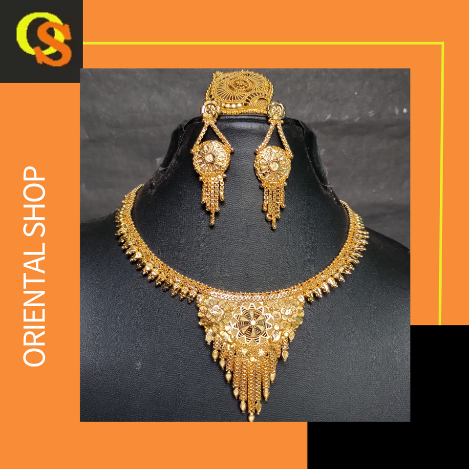 Quality Assured Necklace Earrings Ring Set with 22K Gold Plated Trendy Style Jewelry Set for Sale by Exporters