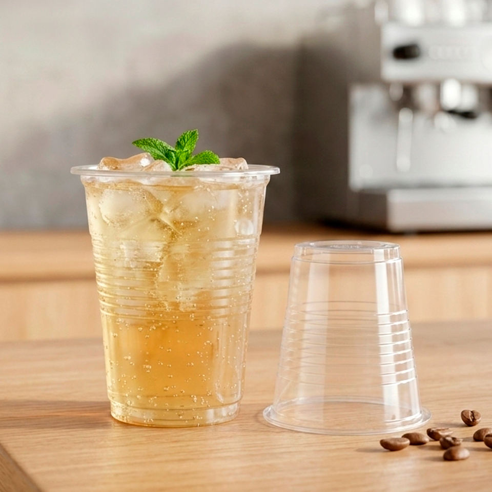 Gobelets en plastique transparent jetables Quang Quan à paroi simple en PP, 12, 16, 24 oz, diamètre du couvercle 95 mm, pour boissons chaudes/froides, thé au lait, café