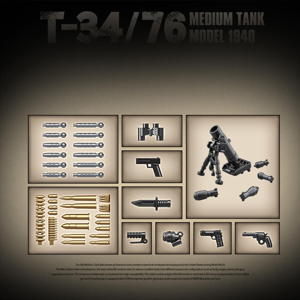 Quanguan WW2 modèle de char de combat militaire jouet 100276 ensemble d'affichage de construction char moyen T-34 soviétique pour la décoration étude technique