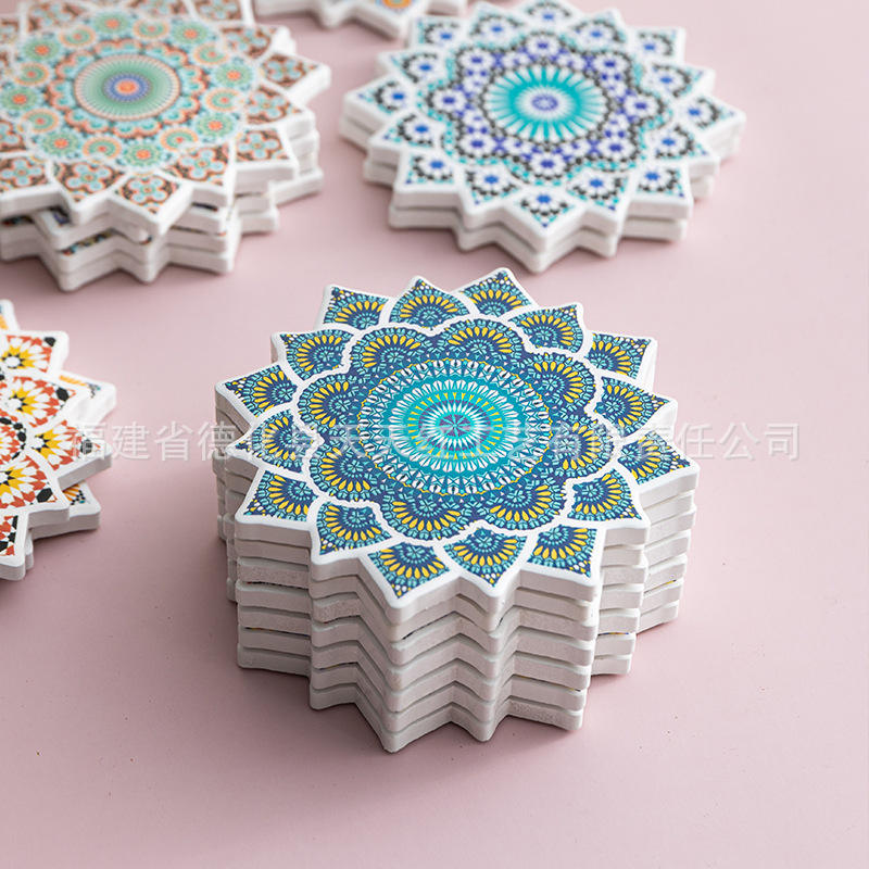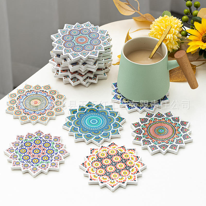 Sous-verres en porcelaine de Quanzhou, forme irrégulière, motif floral, isolants thermiques, absorbants, en céramique, pour accessoires café et thé