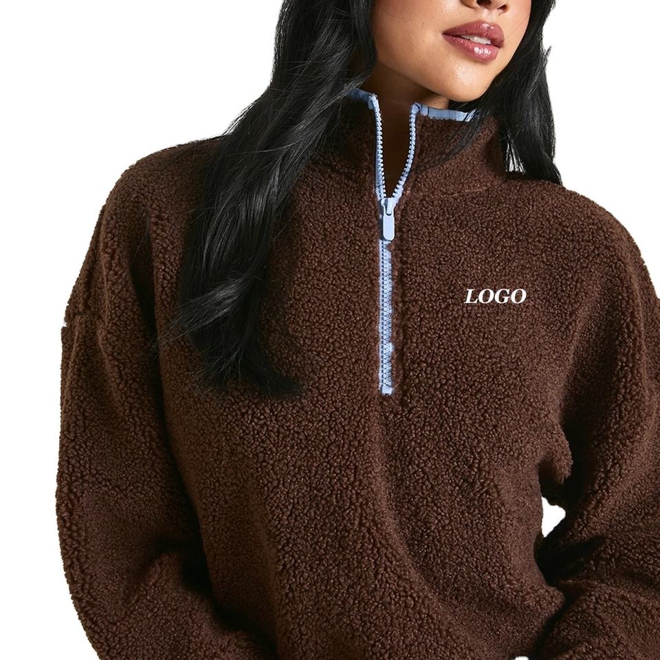 Sweat-shirt pour femme à fermeture quart de zip en polaire, manches longues, pour commandes en gros, design streetwear décontracté et durable 2026