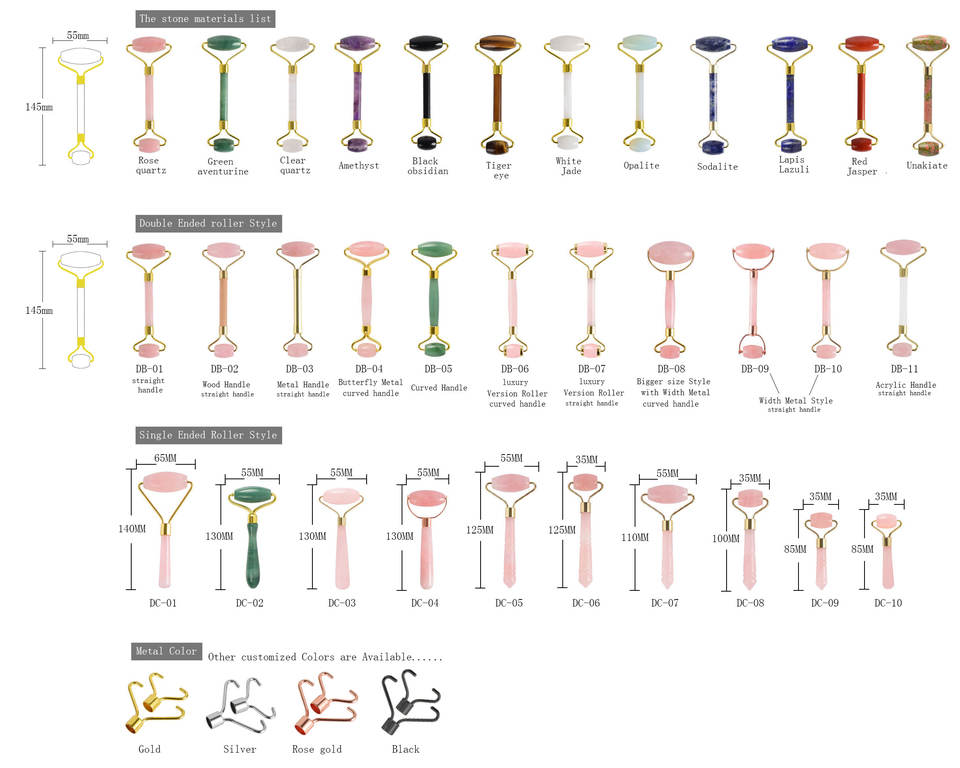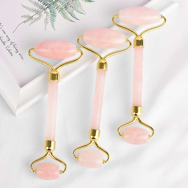 Quartz Rose Visage Masseur Rose de soin et de beauté outil De rouleau de Jade