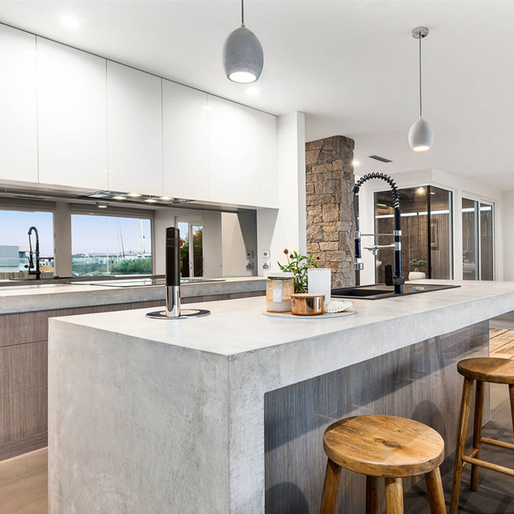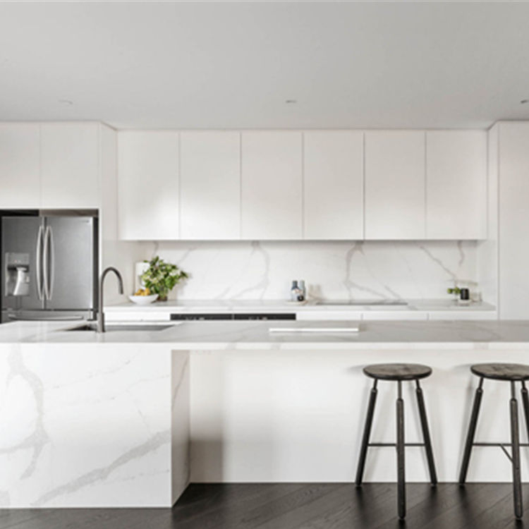 Armoires de cuisine modernes en pierre de quartz, peinture deux composants, laque, meubles de cuisine, ensemble de meubles de cuisine