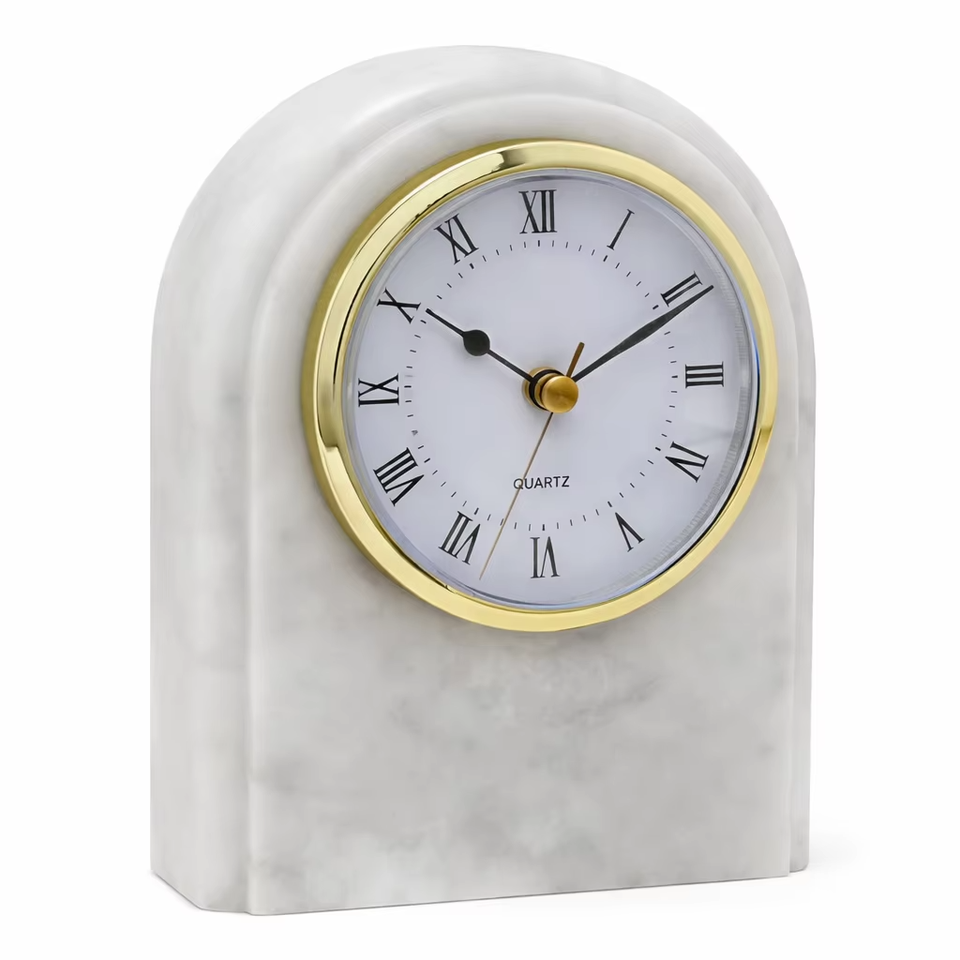 Horloge murale à quartz avec affichage à aiguilles en marbre blanc naturel pour la décoration du salon
