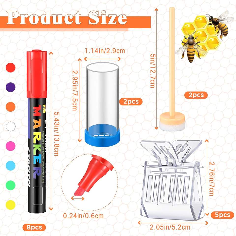 Kit de marquage reine des abeilles 15 pièces fournitures d'apiculture 8 stylos 2 bouteilles 5 clips de cage en plastique nouvel état 1 an de garantie