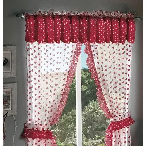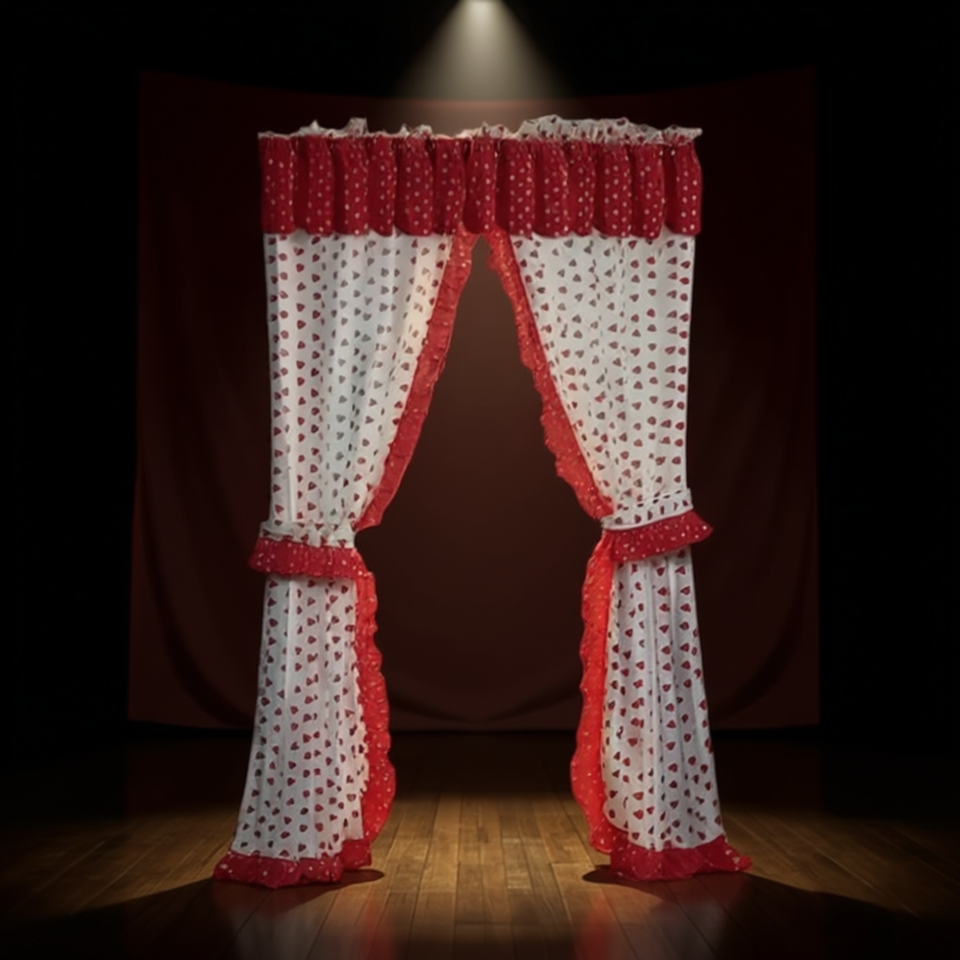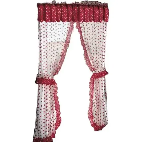 Ensemble de rideaux Queen Of Hearts 2,15 m x 2,78 m en coton rouge et blanc avec panneau en dentelle pour costume de compétition