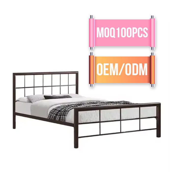 Cadre de lit en fer classique moderne de taille Queen Mobilier de chambre réglable-Modèle Offre Spéciale KD-2132 brun mat