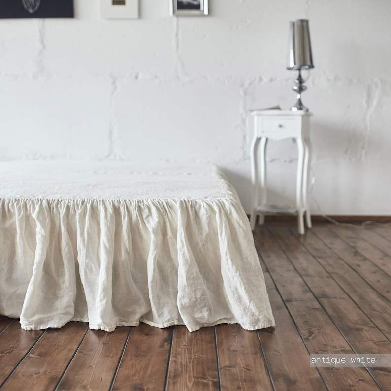 Jupe de lit en lin lavé à volants doux Queen Size pour la maison ou l'hôtel