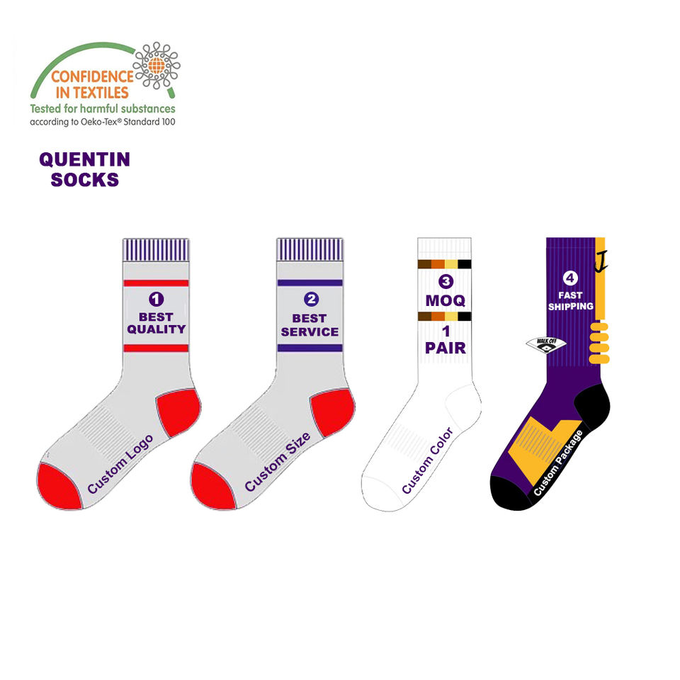 Quentin Custom logo Chaussettes de sport Cadeau No quantité minimale de commande Promo Chaussettes Crew personnalisées pour hommes Logo Marque Jacquard Knit Custom OEM Chaussettes Fabricant