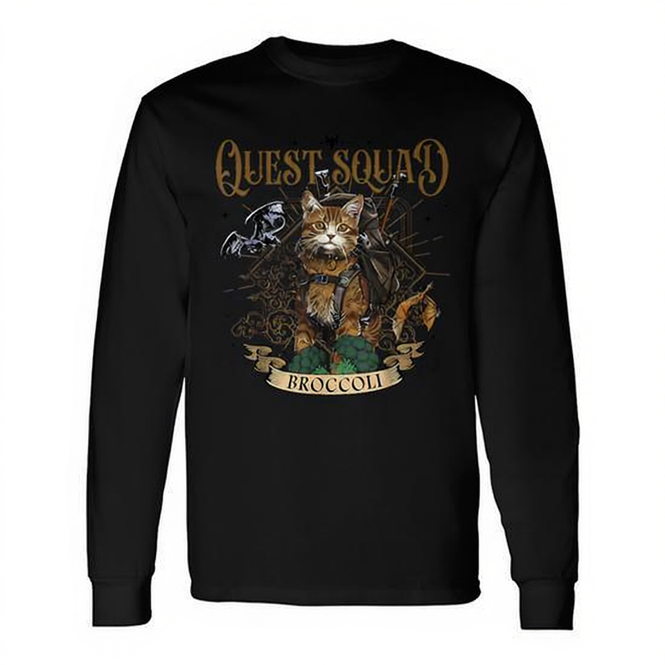 T-shirt à manches longues Quest Squad Broccoli Cat, design fantaisie