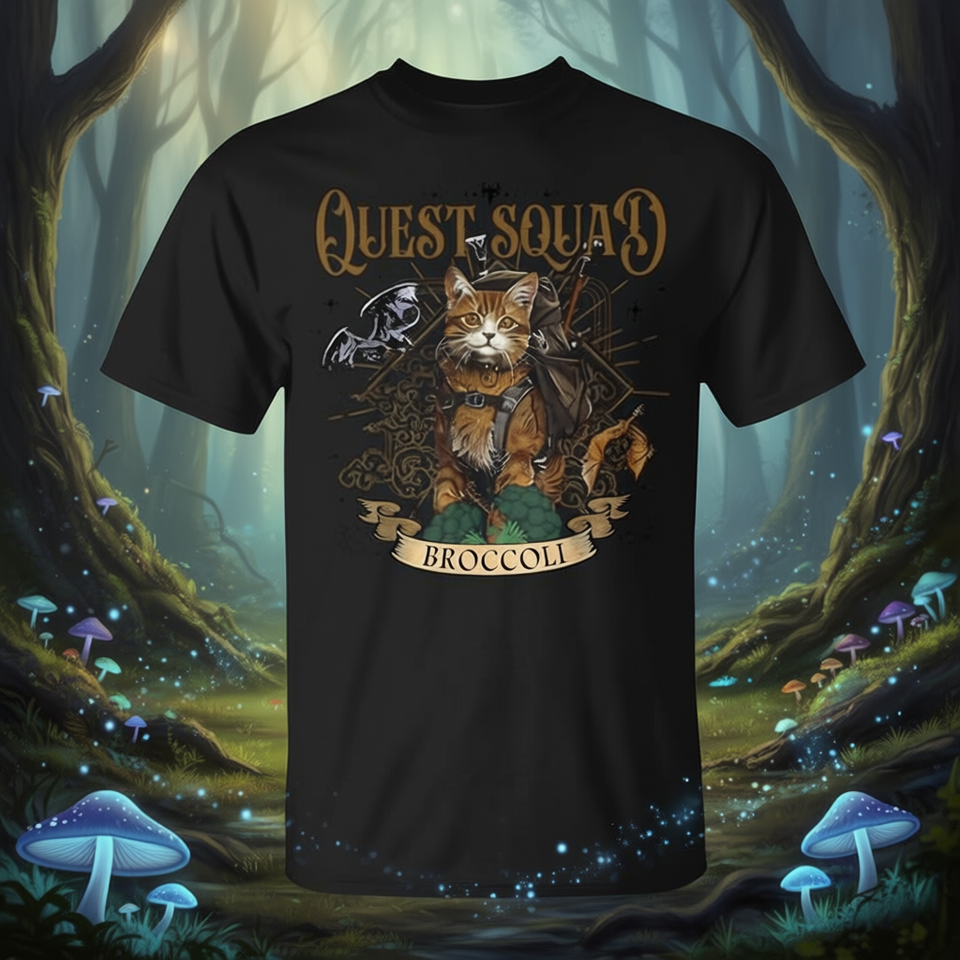 T-shirt Quest Squad Broccoli Cat, design fantaisie, taille adulte unisexe