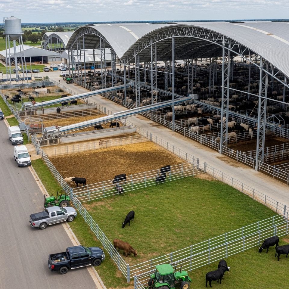 Atelier modulaire en structure métallique à assemblage rapide et bâtiment de ferme laitière en structure métallique agricole