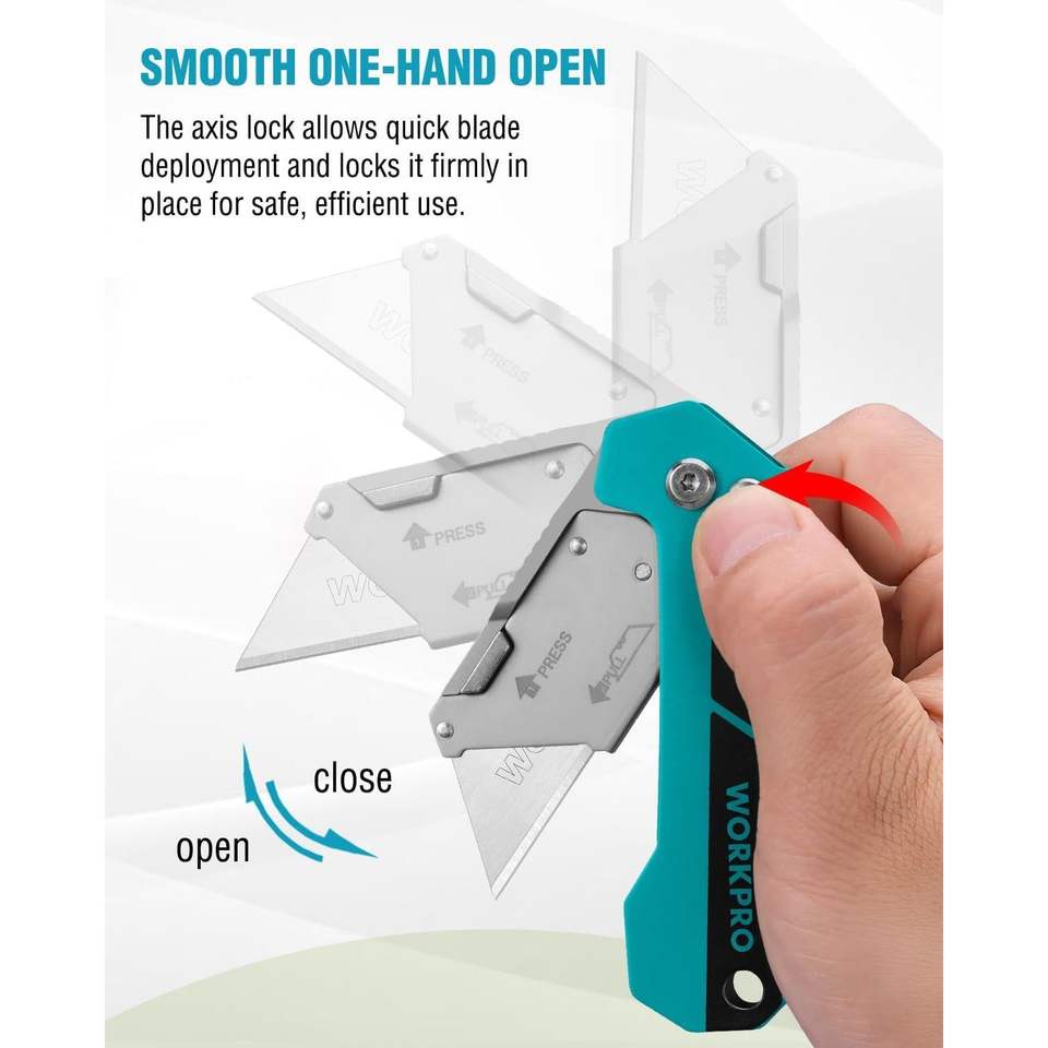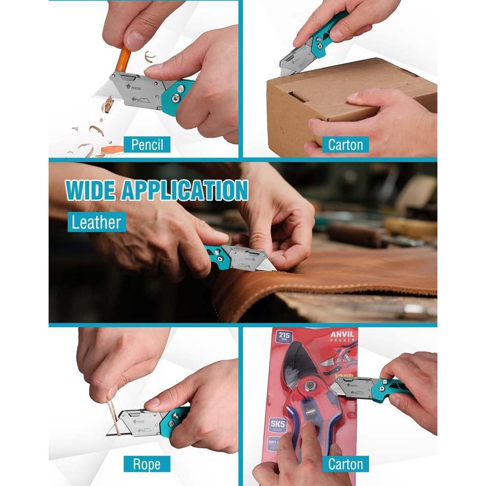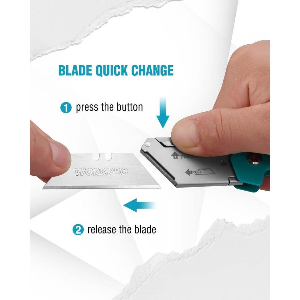 Couteau utilitaire pliant à lame à changement rapide avec 10 lames supplémentaires, clip ceinture, verrouillage à axe, couteau rasoir avec design de coupe-boîte