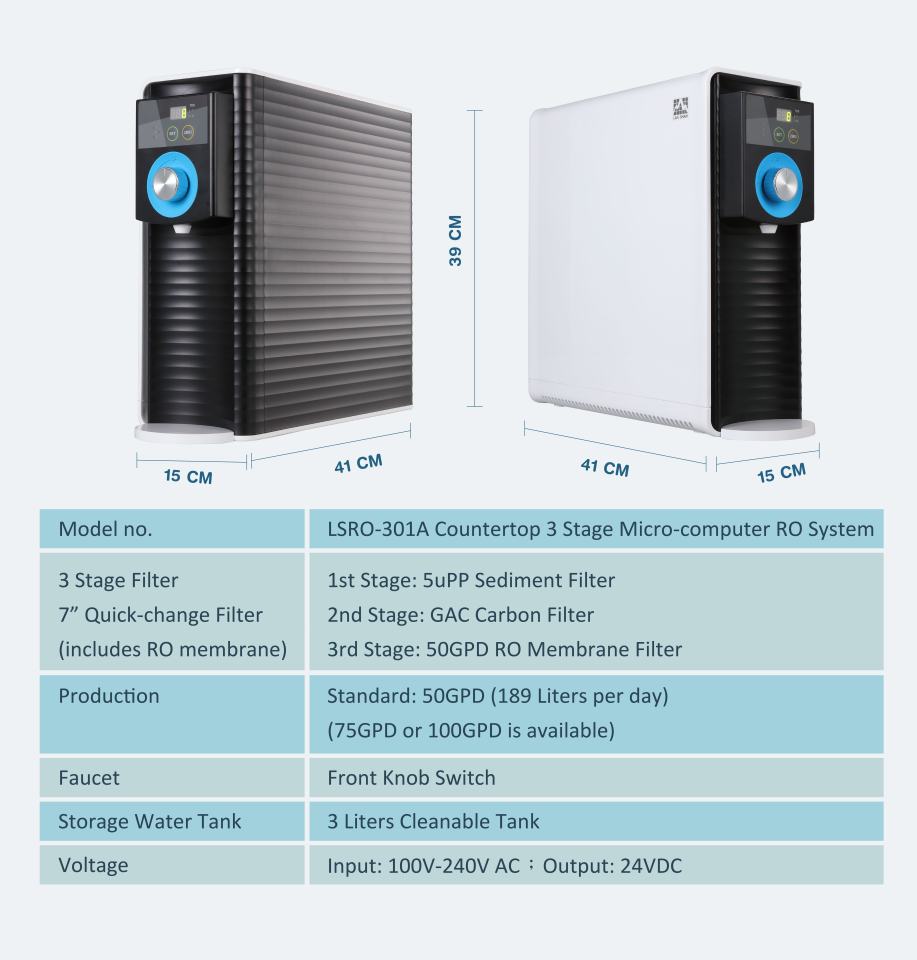 Purificateur d'eau par osmose inverse à comptoir à 3 étages à changement rapide avec panneau intelligent IC, capacité de 50/75 GPD pour usage domestique