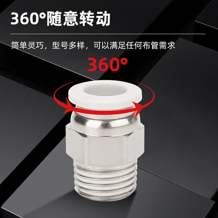 Raccord pneumatique à connexion rapide pour tuyaux d'air, filetage externe en cuivre, buse d'air droite, PC8-02/10-03/12-04, nouveau tuyau