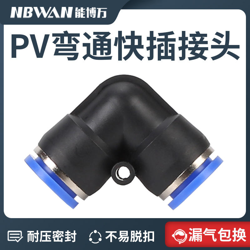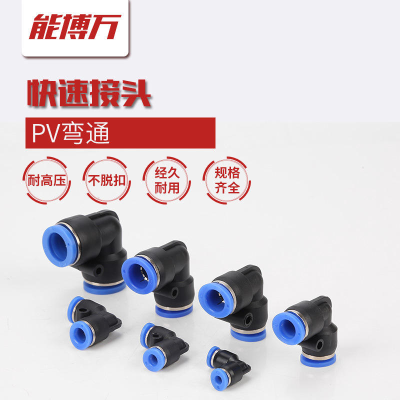 Raccord pneumatique à connexion rapide, coude à angle droit, plastique, connexion rapide, insertion rapide, raccord de tuyau d'air en laiton, modèles PV-4/6/8/10/12/16