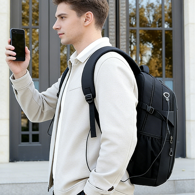 Sac à dos unisexe en Oxford noir avec fermeture éclair, logo personnalisé rapide, étanche, pour camping et sport, avec port USB et bretelles réglables, OEM ODM
