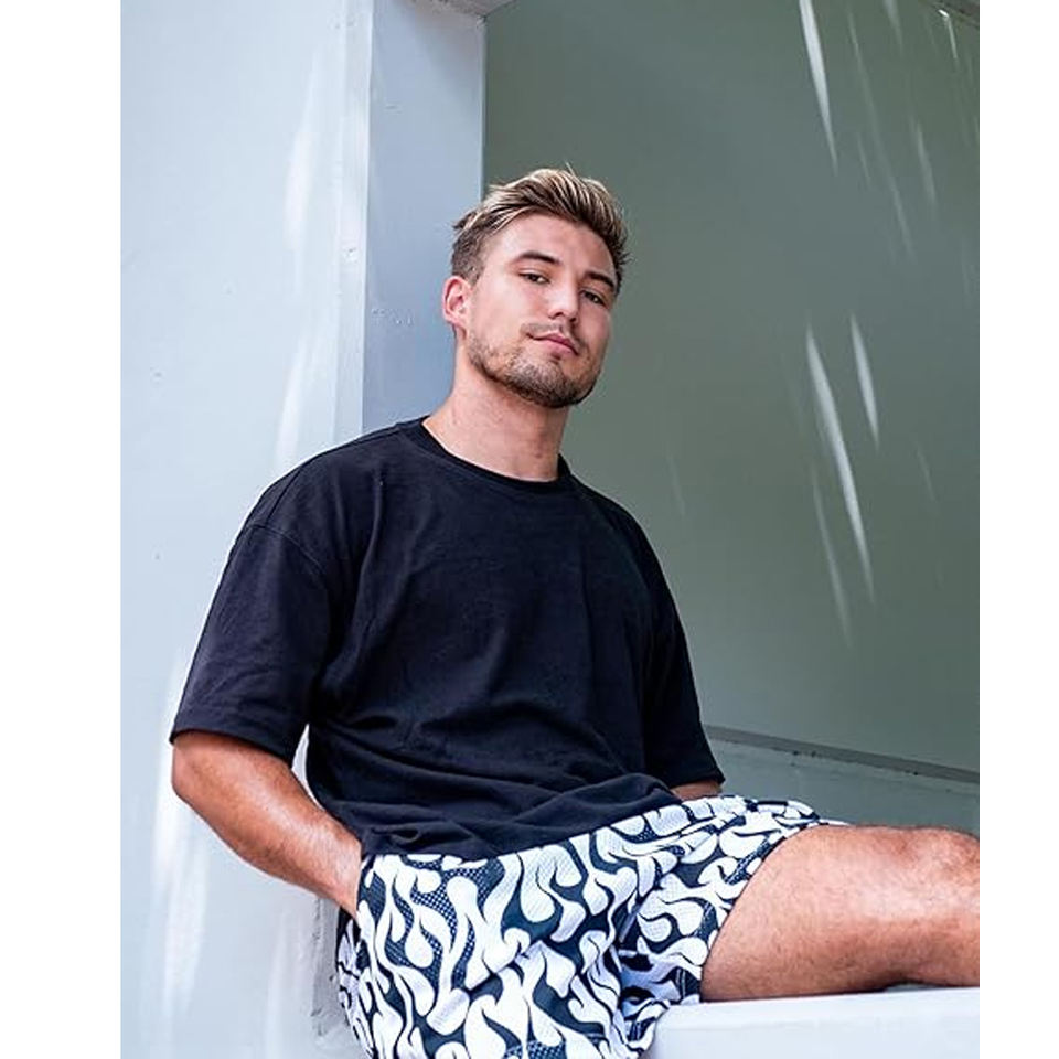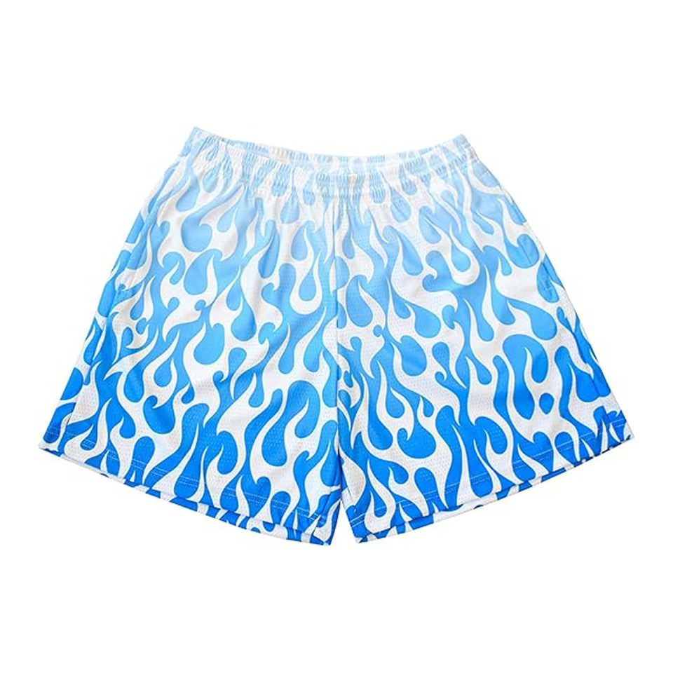 Quick Dry Custom Sublimation 100% Polyester Canvas Fabric Breathable Mid Elastic Waist Sporty Flame Pattern Men Fitness Gym